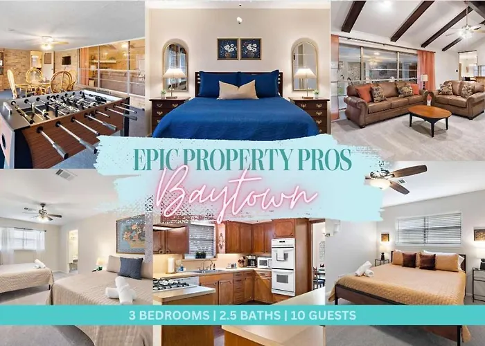 Nestled in the serene surroundings of Baytown, Relax And Play invites guests to indulge in a tranquil escape. This charming retreat boasts three beautifully appointed bedrooms, making it an ideal sanctuary for families or groups looking for both relaxation and recreation. Enveloped by lush greenery and well-tended gardens, the ambiance here radiates warmth and welcome, ensuring a delightful stay for every guest. At Relax And Play 3Br Retreat W Sunroom, each room offers unique character and tastefully curated décor. Guests can unwind in spacious accommodations that feature modern amenities, including plush bedding, ample natural light, and a cozy atmosphere. The sunroom, a highlight of this retreat, provides a tranquil space for morning coffees or evening relaxation, creating an inviting hub for connection.